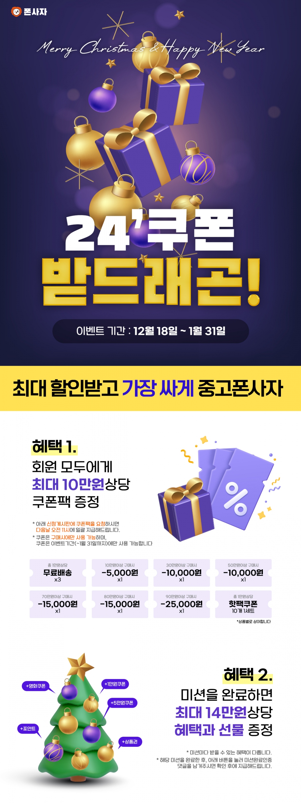 폰사자 작성일쿠폰팩발급완료! 쿠폰9장 보내드렸습니다! 사용기한이 1월 31일까지이므로 혜택 놓치지 말고 받아보세요!