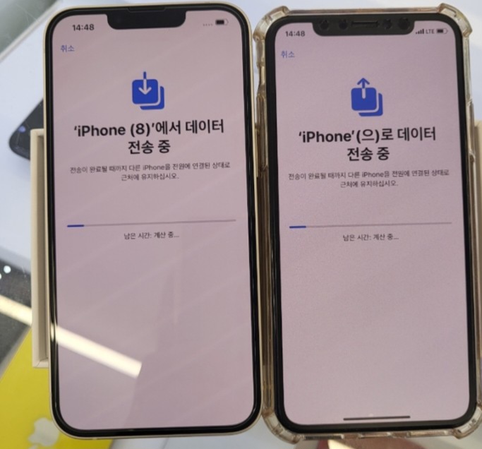 아이폰14 옐로우 컬러와 화이트 컬러 고민하셨는데 화이트로 결정해주셔서 순조롭게 데이터 옮겨드렸네요~^^