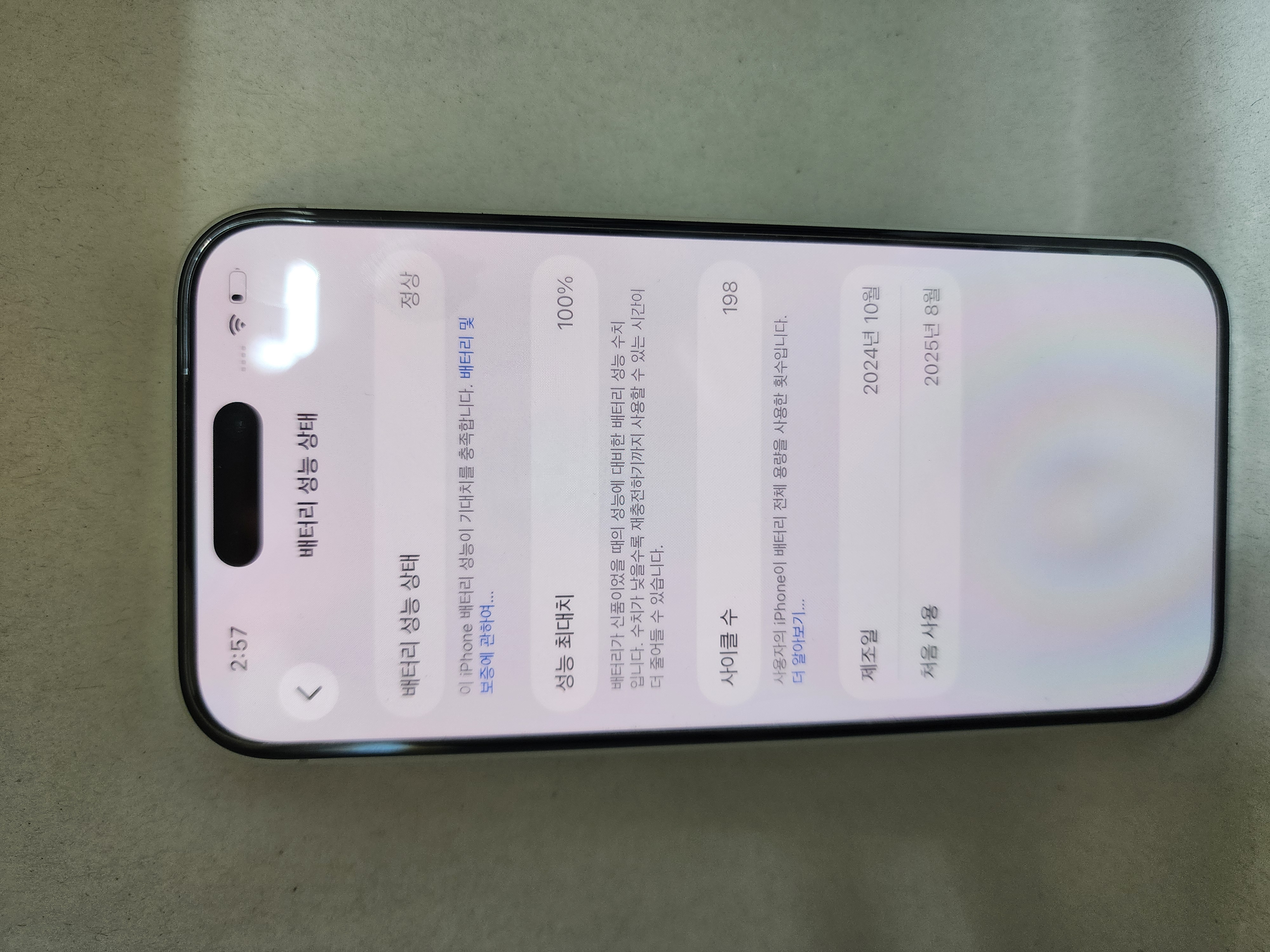 배터리 성능 100%